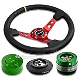 NRG-SRK-121H+200GN+101GN+006RDY, NRG Innovations 13.78" 350mm 3" Deep Dish Style Black Leather Yellow Center Marking Red Spokes Racing Steering Wheel Combo with 6 Hole Short Hub Adapter with Gen 2.0 Green Quick Release with Green Lock Hub Kit SRK-121H