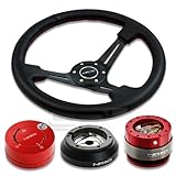 NRG-SRK-160H+200RD+101RD+018R, NRG Innovations 13.78" 350mm 3" Deep Dish Style Black Leather Red Stitch Black Spokes Racing Steering Wheel Combo with 6 Hole Short Hub Adapter with Gen 2.0 Red Quick Release with Red Lock Hub Kit SRK-160HNRG Quick Release features many options that conventional ball-locking quick release system do not. It is specially engineered with raised sections to prevent the scratching and stretching of the hub while a self locking feature adds increased safety and functionality. Features racing styled for added style and look. Each unit is made from the highest quality aircraft grade aluminum and is anodized for maximum durability and finish.